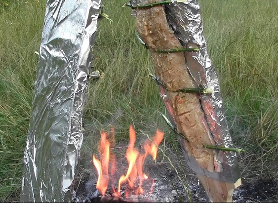Вот это очень интересная штука - приготовление крупных говяжьих ребрышек в аргентинском стиле: аргентинцы разводят костер и вокруг него готовят мясо, устанавливая его на стойках под углом примерно в 45 градусов.