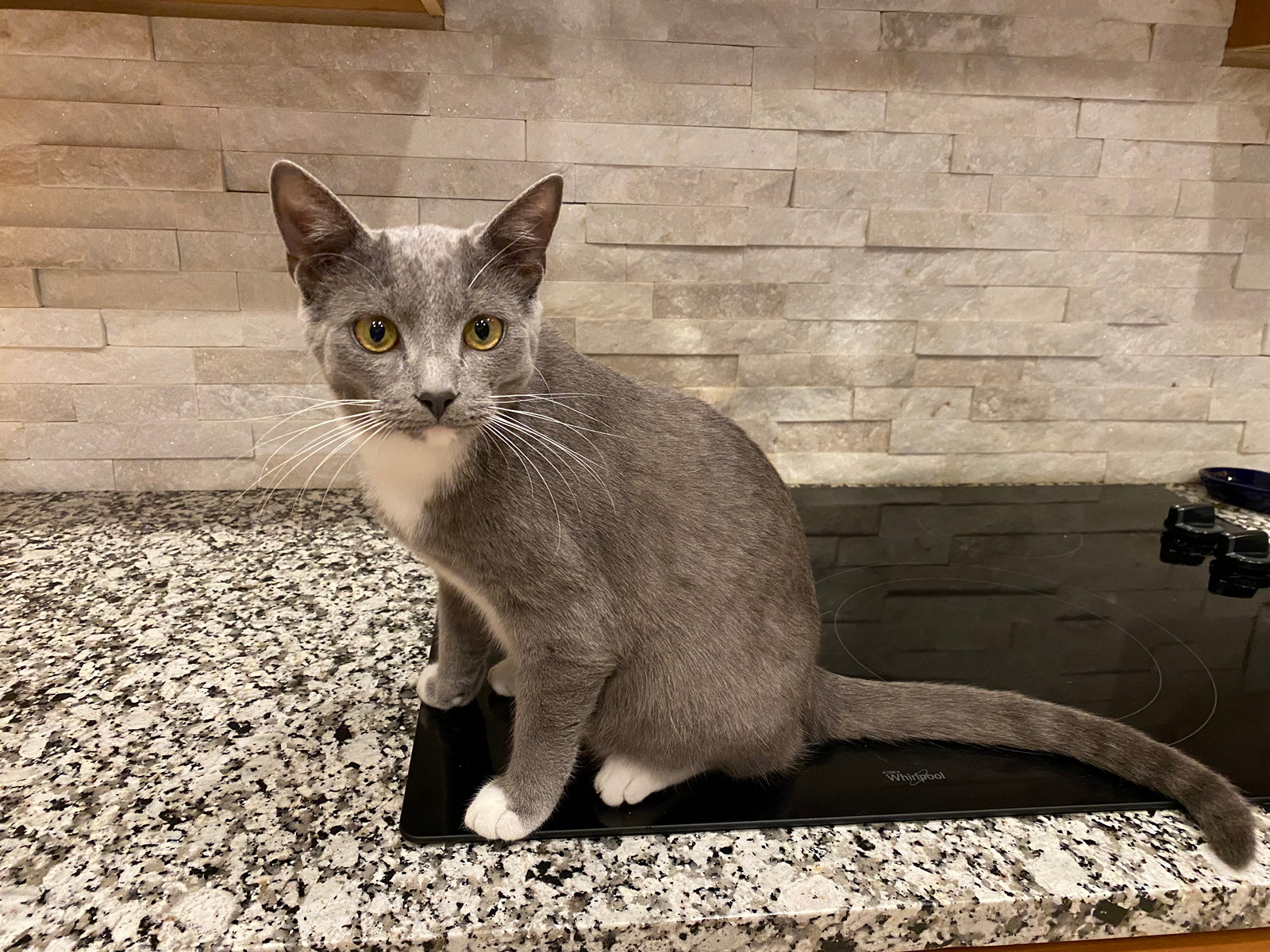 У меня газовая. А появление хозяина на кухне у старшей сибирской однозначно ассоциируется с чем-то вкусным 😄 она взлетает на стол (не отучается) и иногда хвостом под закипающий чайник попадает. Пока только запах палёной шерсти, без ущерба имуществу, но надо всегда быть начеку.