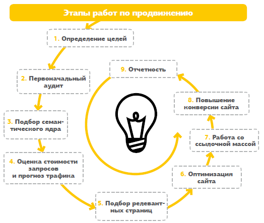 Всю информацию об этапах раскрутки сайта, расчете бюджета и выборе оптимального инструмента вы найдете в главе «Этапы продвижения» энциклопедии Ingate.