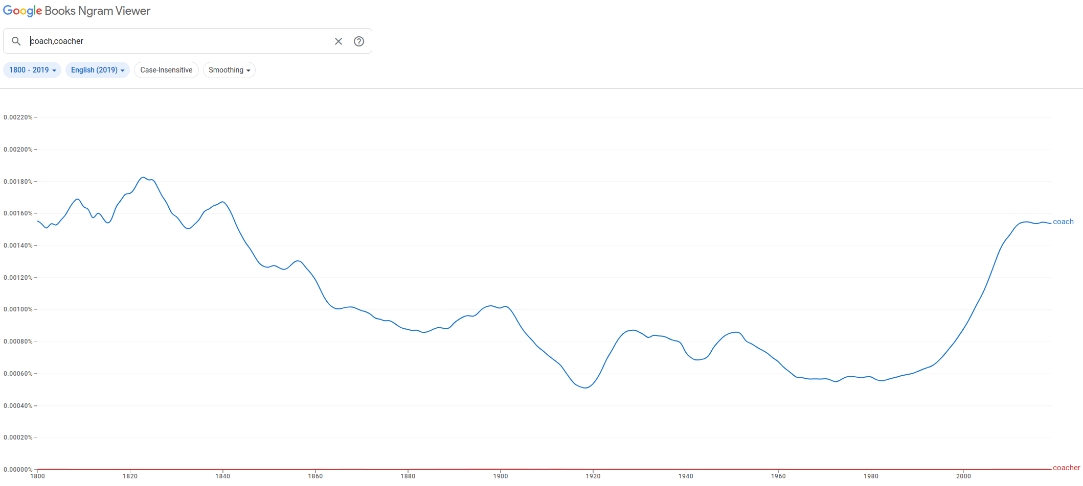Первое использование слова «coach» для обозначения инструктора зафиксировано около 1830 года в Оксфордском университете — «коучем» на сленге стали именовать человека, помогающего студенту готовиться к экзамену.
