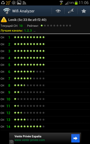 Очень полезная программка под Android - WiFi Analyzer. C ее помощью можно составить довольно четкое представление о том, что творится с Wi-Fi у вас в квартире. Ну и также с помощью графиков программы можно подобрать не слишком занятый канал.