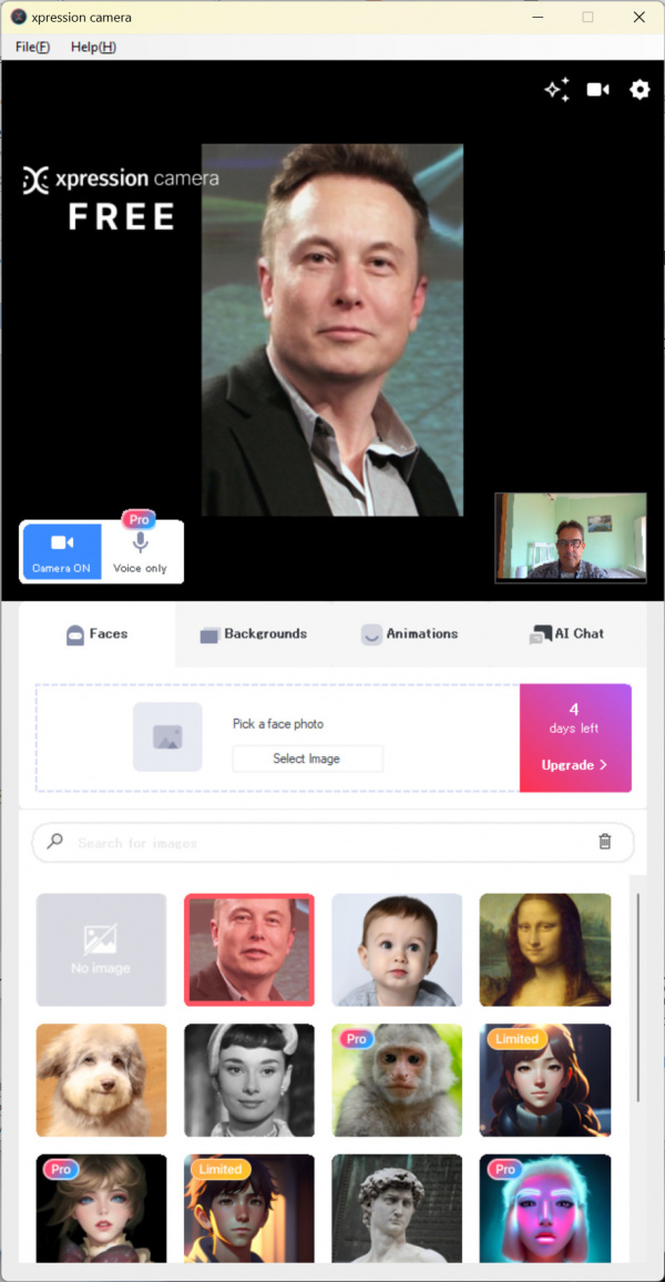 Попалась тут софтинка под названием Xpression Camera, которая может ваши движения и ваш голос накладывать на выбранных персонажей.
