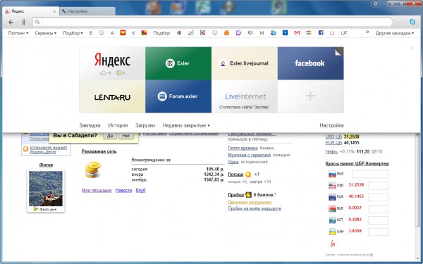 Это так называемое "табло" и в Мозилле у меня есть с установленным Яндекс.баром (а без него мне никуда, удобно и почта, и деньги и фотки, курс валют и т.д... - все на одной панели). Так что из-за него одного точно нет смысла устанавливать.