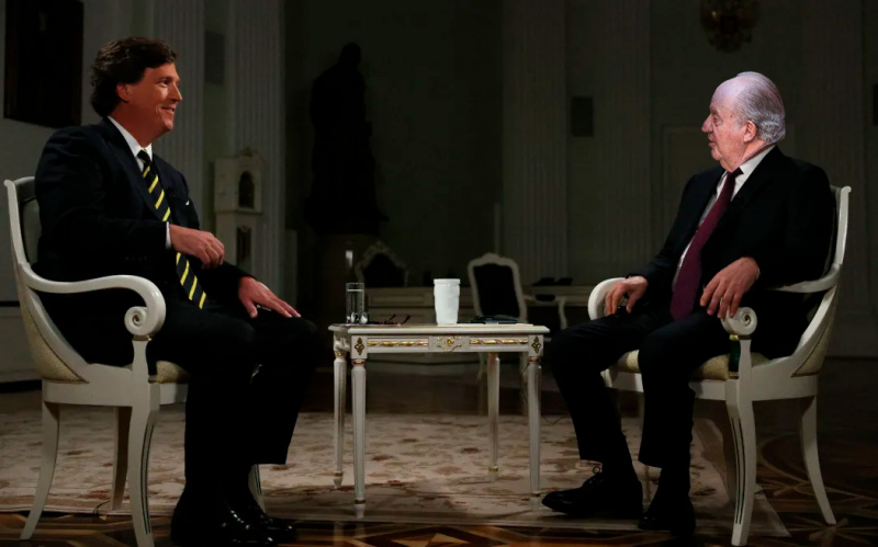 Петр Андрушевич попытался представить, как бы мог сложиться разговор Такера Карлсона с бывшим королем Испании Хуаном Карлосом I де Бурбоном, если бы тот общался в стиле Вовы Путина.
