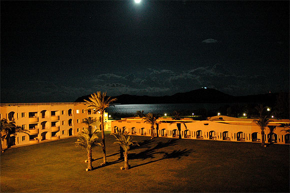 Вот так лужайка отеля Sofitel выглядела ночью: