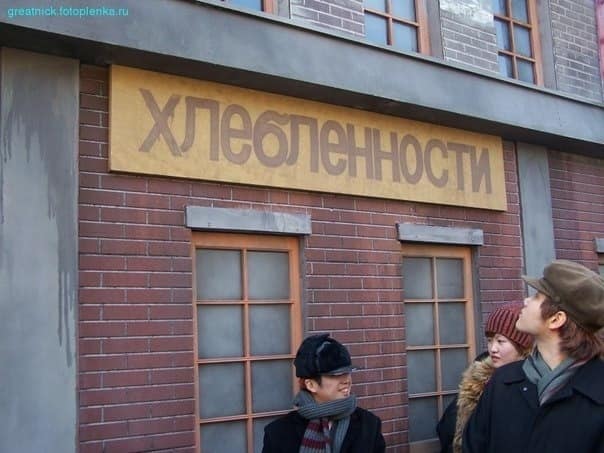 На фото, в основном, русские из массовки, снимающиеся на фоне этих психоделических вывесок.