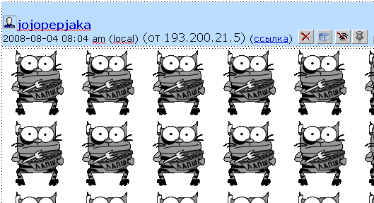 Хохма, в общем-то, старая. Однако в данном случае прикол заключается в том, что при таких параметрах картинки в самом браузере невозможно выяснить, от кого этот комментарий - все уходит за границы окна. Такая же картина наблюдается во всех трех браузерах - MSIE, Opera, FireFox.