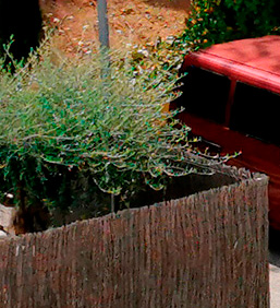 Но в этих идеальных условиях, почему то начинают использоваться "улучшайзеры", которые на половине изображения убивают детали полностью. Я рассматриваю куст на переднем плане и вижу странную картину. Рядом соседствуют отчетливо прорисованные детали листьев с какой-то мазней. Если у вас матрица обеспечивает такую детализацию, то почему я вижу однотонную мазню, а не четкие детали листьев? И тут напрашивается ответ. Нет на самом деле никакой супердетализации, есть просто мощная постобработка, при которой возможно определение и выделение за счет контрастности нечетких элементов изображения и дорисовывания им резкости. А там, где зацепиться процессору не за что (массив мелких деталей при отсутствии контраста) там алгоритмы дорисовывания резкости не работают. Но почему бы тогда не оставить в этих областях все как есть? У нас же идеальные условия - шумов быть не должно, а матрица с оптикой должны обеспечивать фантастическую детализацию. Полагаю, причина в том, что картина там отнюдь не столь радужная. Вот и грохают все наглухо там, где программно дорисовать не смогли.