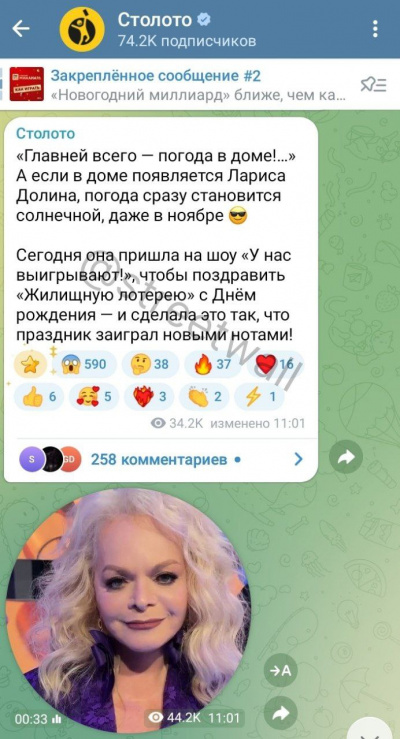 «Столото» удалили все посты с Ларисой Долиной, где она приглашала всех поучаствовать в «жилищной лотерее»
