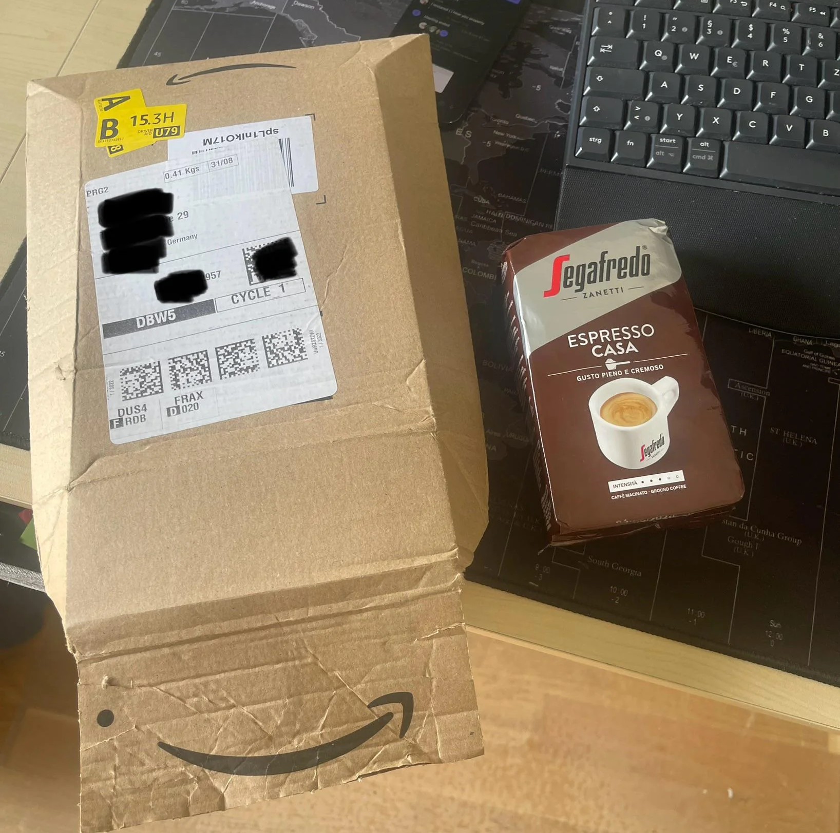 Чтобы не пропустить доставку, я сегодня решила поработать из дома и проводила встречи с балкона, выходящего на улицу. Представьте себе мое удивление, когда курьер въехал на мою улицу и не остановился у моей двери. Мне пришлось спуститься вниз и поговорить с ним, когда он уходил с улицы. Он спросил мое имя и ПИН-код для доставки, а затем вручил мне посылку.