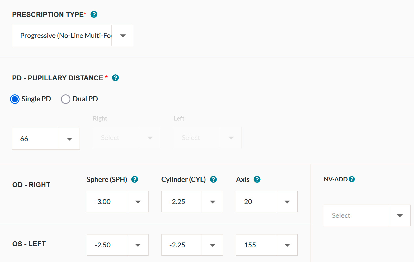 -0.75 - это для близи, -3.0 - это для дали, правильно? Линзы прогрессивные, то есть должно быть два значения - для близи и для дали. Но в данных на сайте я вижу только одно значение - Sphere, для дали. А где же задается значение для близи? При этом тип линз выбран прогрессивные.