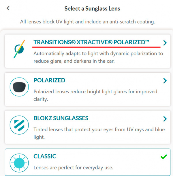Но на этом сайте большой выбор вариантов фотохромов, и это стоит заметно дороже самих очков с прогрессивными стеклами, поэтому хочется узнать, что именно там имеет смысл выбирать.