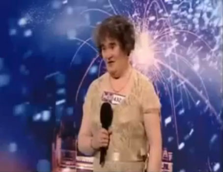 47-летняя британская девственница-домохозяйка, которая выглядит как 47-летняя британская девственница-домохозяйка и говорит как 47-летняя британская девственница-домохозяйка, пришла на конкурс "Британия ищет таланты" и спела. Выяснилось, что голос у нее приличный и поет она неплохо. После этого на конкурсе срежиссировали и поставили следующий ролик. Сначала домохозяйка отвечает на вопросы жюри и все видят, какая она обычная домохозяйка. Потом она начинает петь. В пении нет ничего необычного или потрясающего - просто у тетки действительно есть голос и поет она неплохо. Но буквально в первую же секунду дрессированный зал взрывается бездной оваций. Трое членов жюри отрепетированно изображают дикий восторг - каждый на свой манер. Два придурка за сценой дают в камеру свои придурочные комментарии. Все писаются от восторга, рыдают и бьются в истерике от счастья.