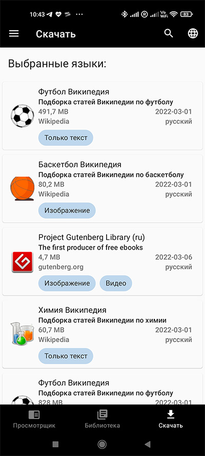 Есть такое приложение Kiwix (доступно для Android и для iOS), которое позволяет это делать в удобном формате - скачивать определенные разделы Wikipedia (и не только из нее) по определенным тематикам.