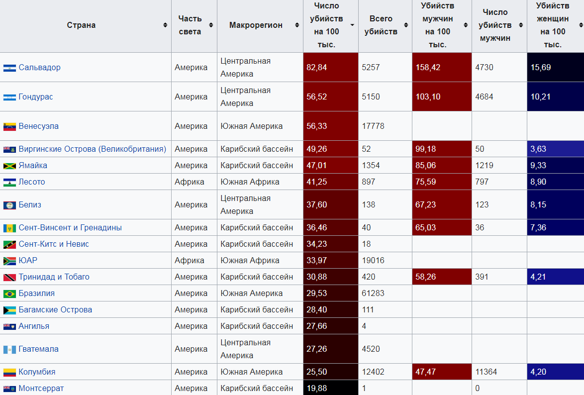 Давайте обсудим тот факт, что страны с самым высоким числом убийств на душу населения, практически все христианские.