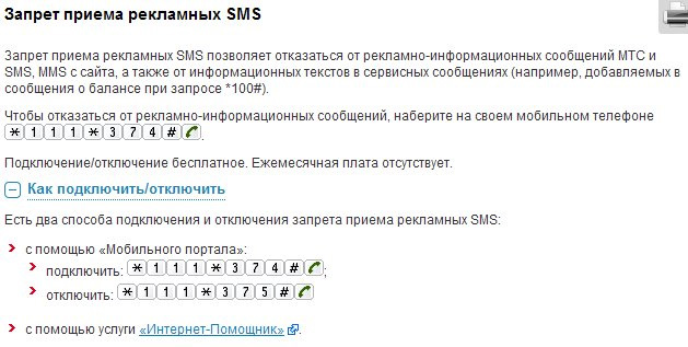 Зашел в интернет-помощник, там услуга "Запрет приема информационных SMS и SMS/MMS с сайта МТС". Дата подключения - 29.02.12.