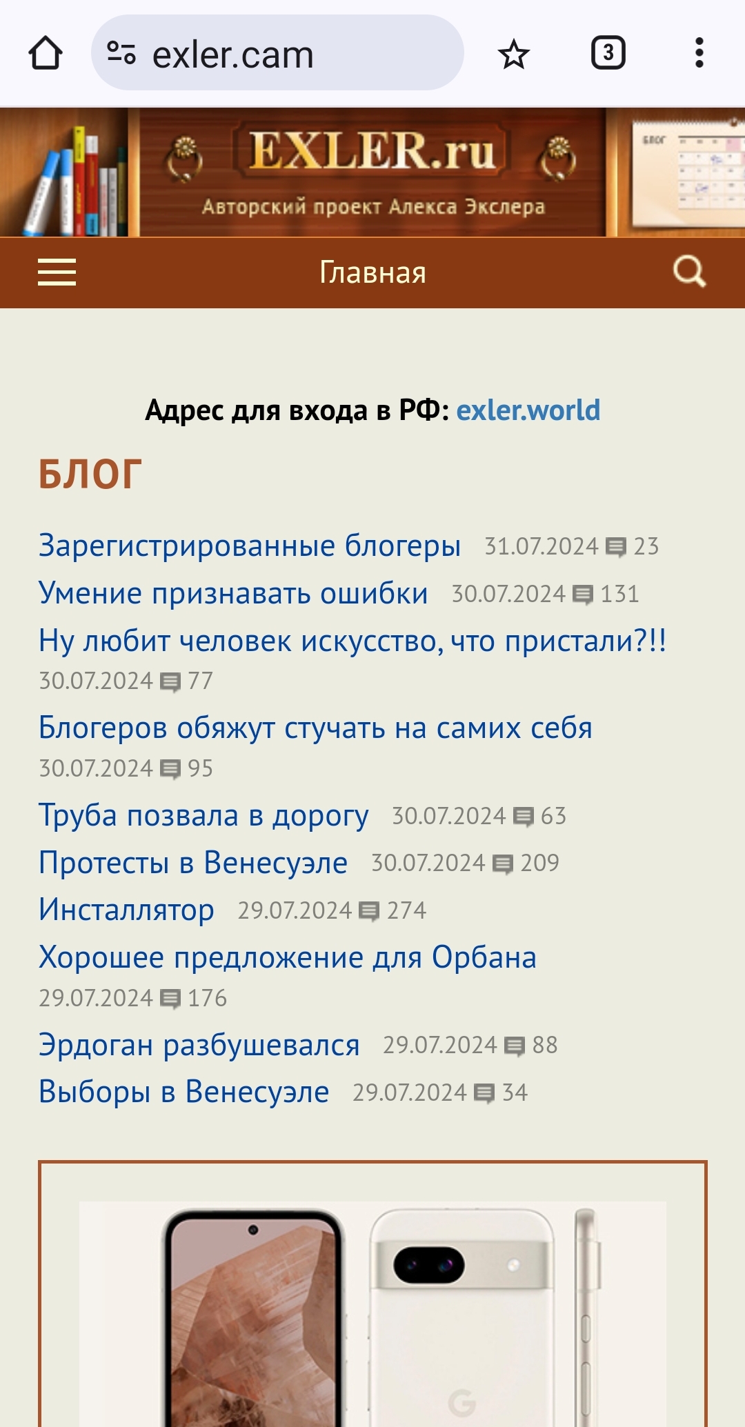 Вы помните, за что заблокировали мой сайт Exler.ru, который существует более 25 лет, и который является одним из самых долгоживущих сайтов Рунета? За, цитирую, "призывы к незаконным акциям". Почему-то не за "фейки о вооруженных силах РФ", а за "призывы к незаконным акциям". Были у меня на странице призывы к незаконным акциям? Нет, не было. Но сайт заблокировали. Насколько я помню, за репост какого-то поста Невзорова. Который был на одной странице. И они заблокировали весь сайт, на котором под сотню тысяч страниц.