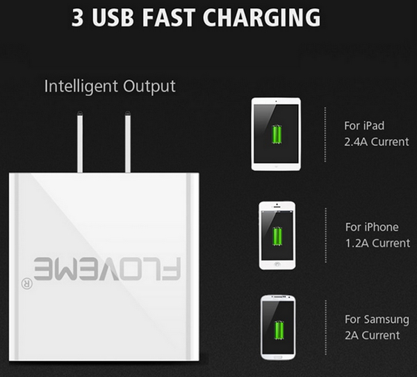Посоветовали хорошего производителя всяких проводочков, зарядничков и прочей мелочевки - Floveme. Я там интересных универсальных проводочков заказал, но они еще не приехали. Зато приехало вот такое зарядное устройство на три порта и с дисплеем, на котором в реальном времени показывается напряжение и ток зарядки.