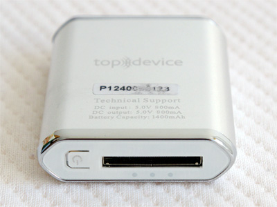 Емкость - 1400 мАч, то есть iPhone/iPod Touch заряжает практически полностью. Выходной разъем у него айфонный, так что аккумулятор просто вставляется в соответствующий порт iPhone, причем айфоном при этом еще и более или менее можно пользоваться: аккумулятор маленький и особо не мешает. У меня жена пользуется айфоном (я, как известно, давно соскочил), на ее телефоне мы этот аккумулятор несколько раз потестировали - оказалось очень удобно. Весит аккумулятор 52 грамма, то есть он совсем легкий.
