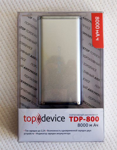 Ну и для брутальных пацанов - аккумулятор, который я теперь постоянно вожу с собой в поездки. Это модель TDP-800. Емкость - аж 8000 мАч.