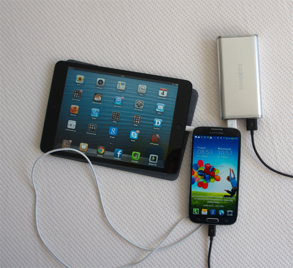 С его помощью можно одновременно заряжать планшет и смартфон.