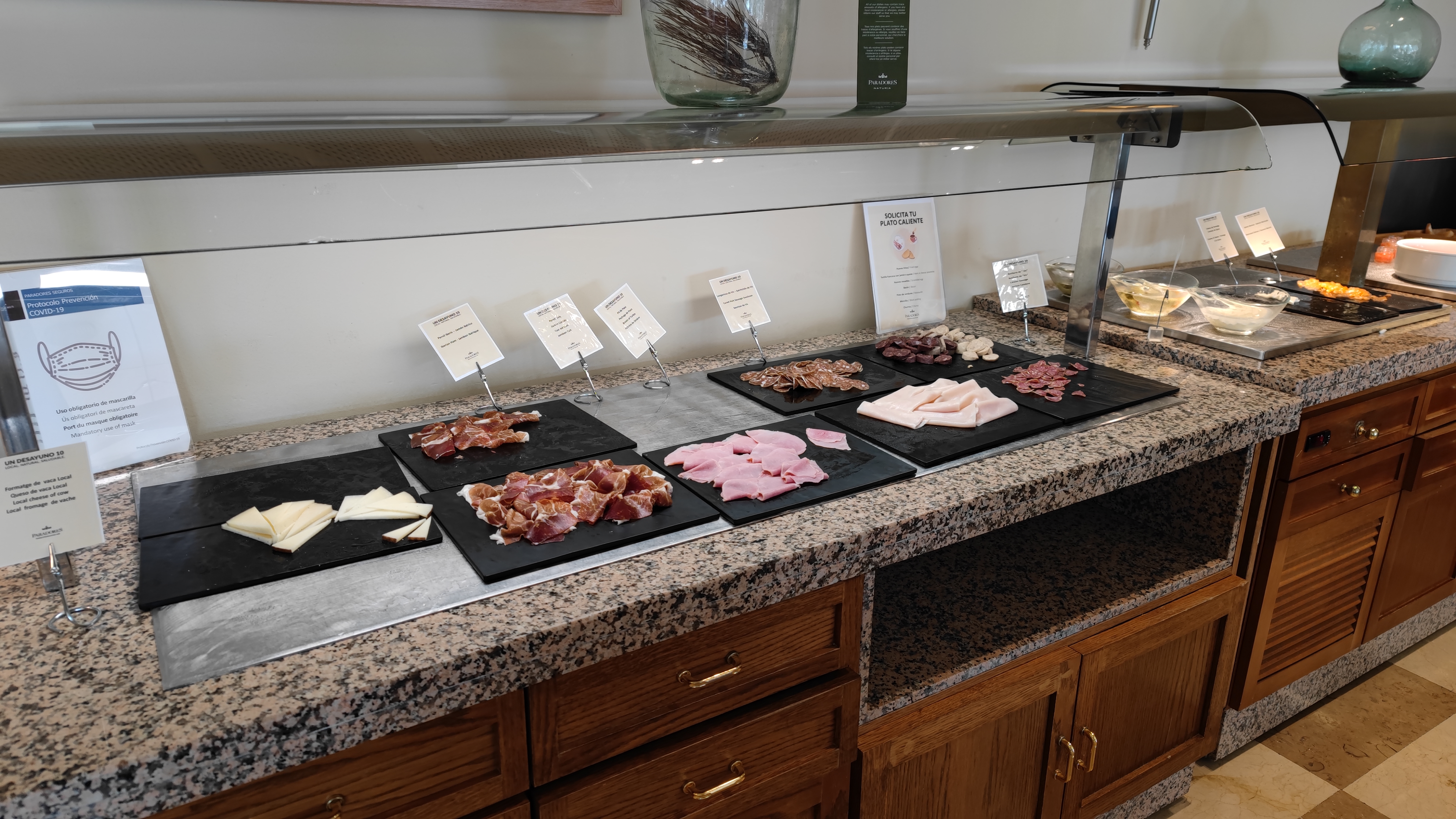 В общем, видали мы завтраки побогаче, но для эпохи коронавирусного дурдома - сойдет. Впрочем, стоил каждый такой завтрак порядка €17. Что для отеля 4 звезды - обычное дело. (Помнится, года четыре назад жили мы в Валенсии в отеле 4 звезды, там завтрак стоил примерно столько же, а есть нечего было вообще (кроме кучи выпечки и сладостей, которые я не ем) - мне пришлось идти в город завтракать.)