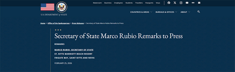 Из заявления государственного секретаря Марко Рубио для прессы от 24 февраля 2026 года.
