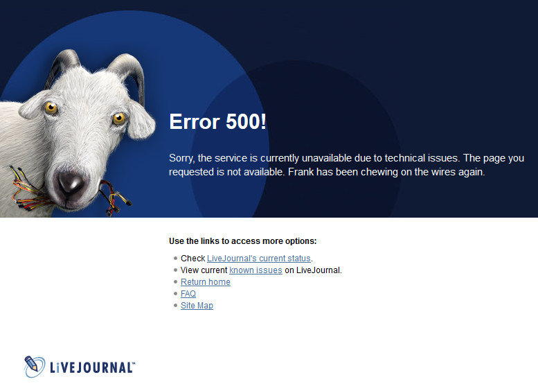 We're in the process of doing some emergency maintenance which will cause a number of issues when using LiveJournal until we're finished.