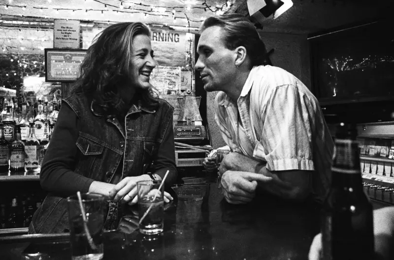 Питер Грин и Иди Фалько на съемочной площадке фильма «Законы неизбежности» в сентябре 1991 года.