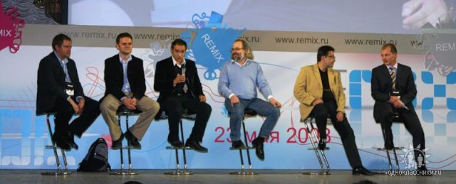 Это мы на каком-то московском MIX. Птички на жердочке. Слева направо: Владимир Габриель, Петр Диденко, Антон Носик, Дмитрий Завалишин, я, Сергей Рыжиков.