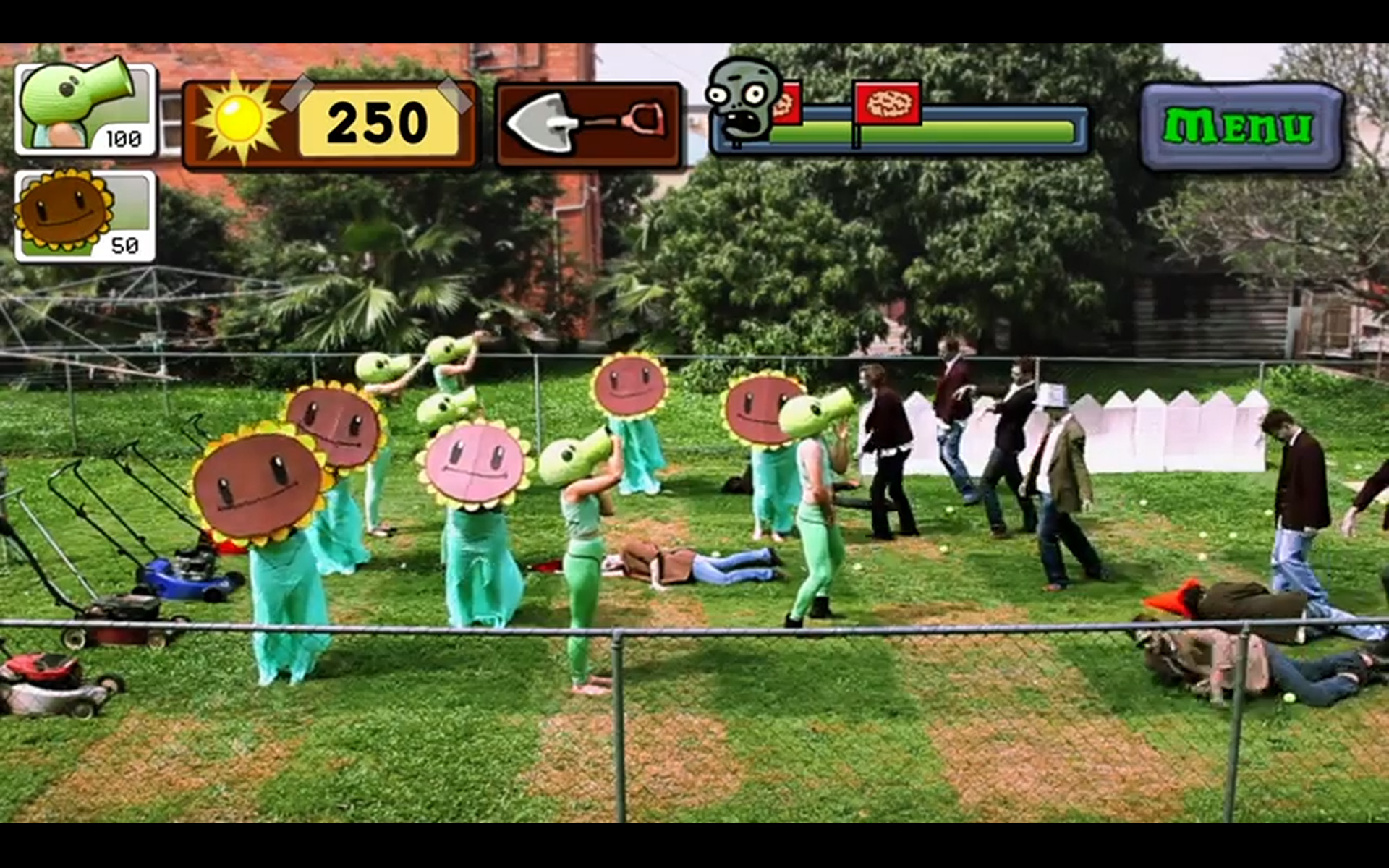 Ну, Angry Birds в реале делали уже много раз. А вот Plants vs Zombie я раньше не встречал... Вот ролик.