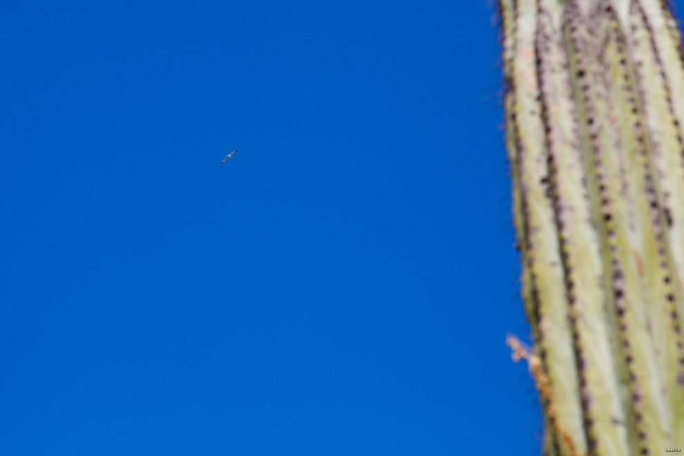 Чайка на фоне ствола чего-то кактусообразного.