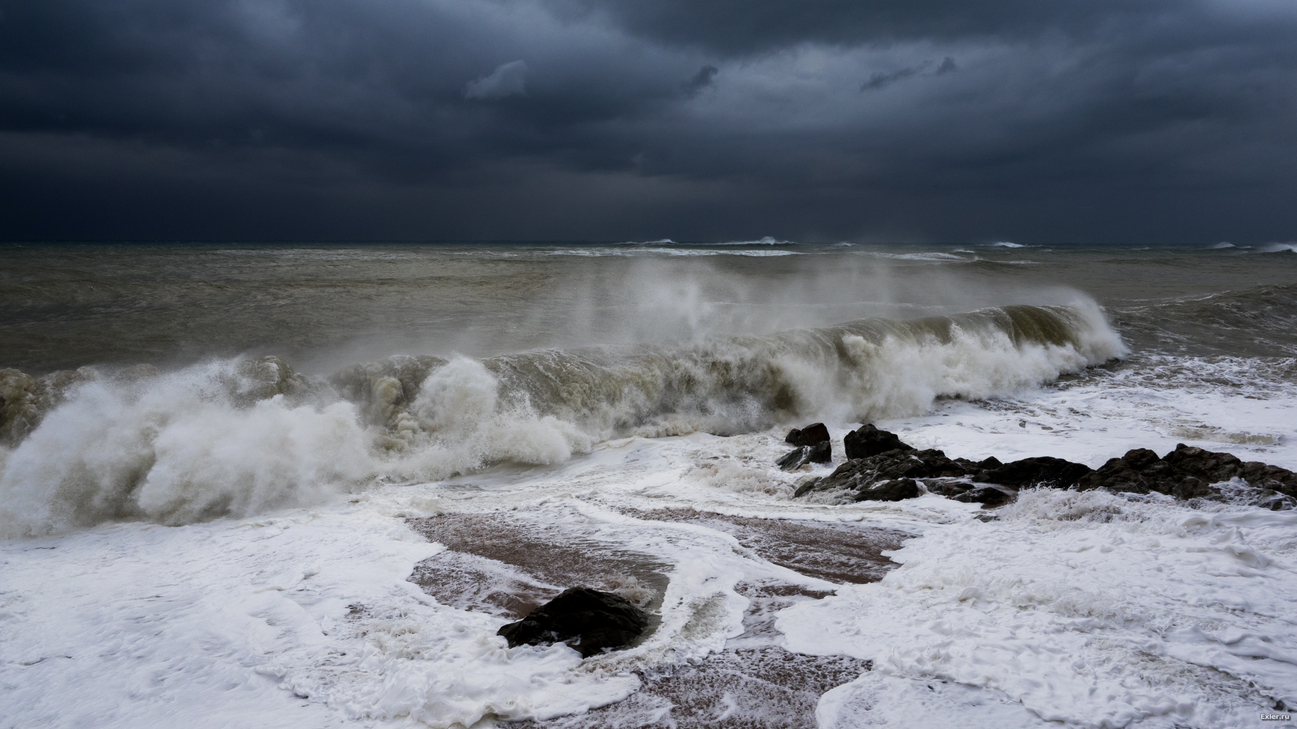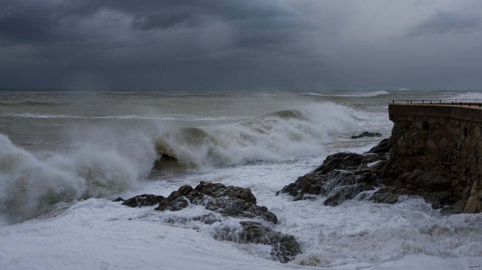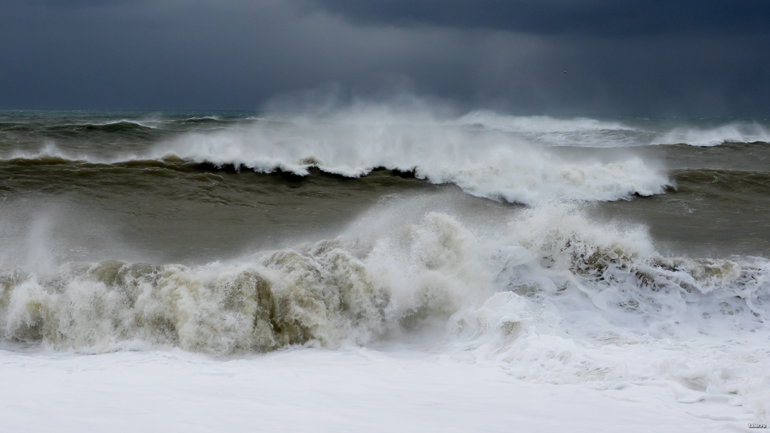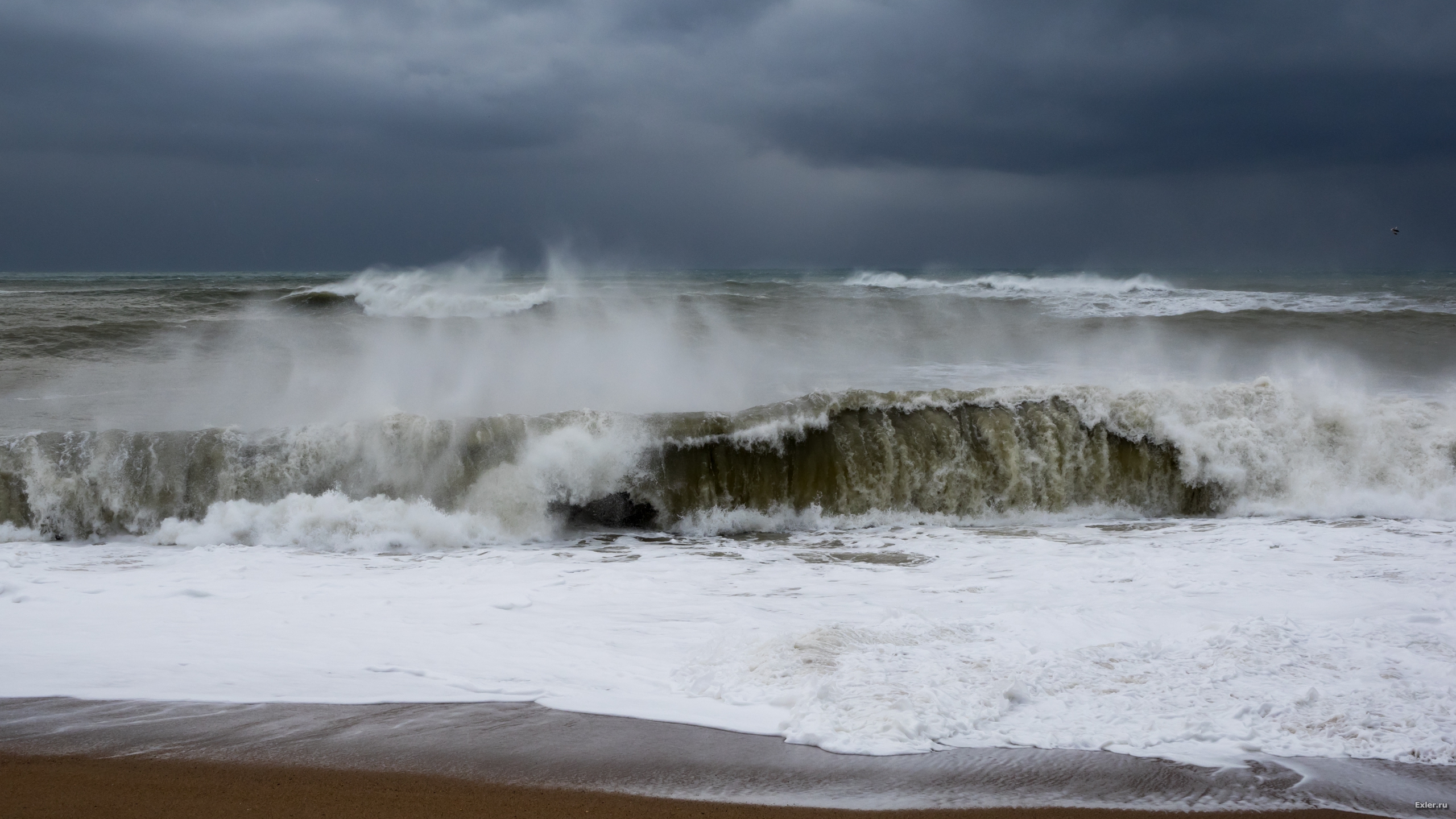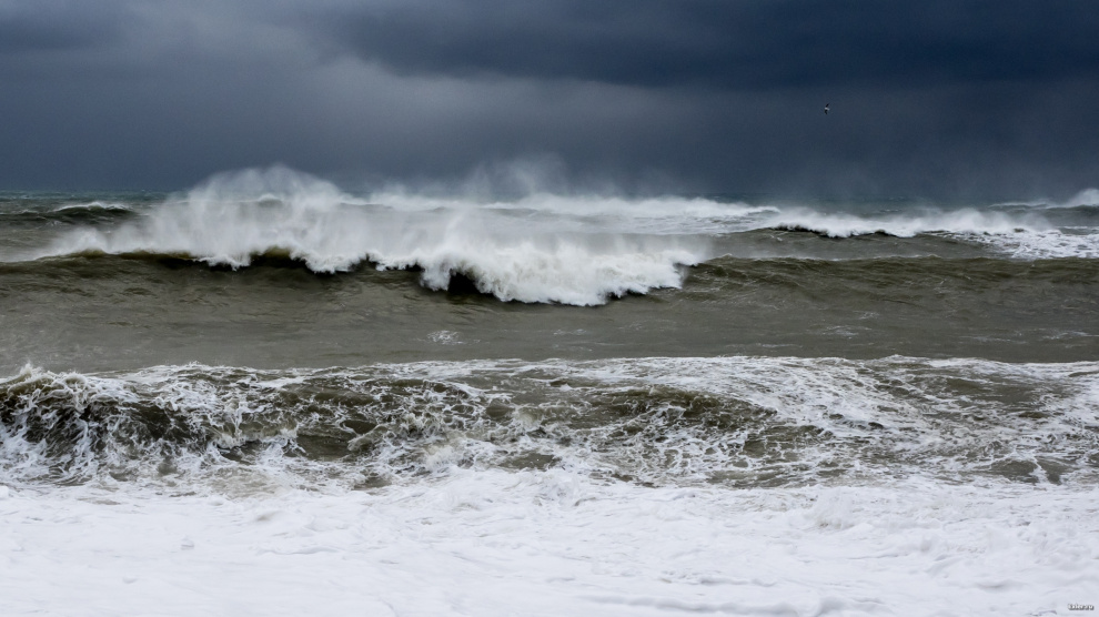 Похожие волны били в конце сентября 2015 в Мальграде. Но ветра такого точно не было. И вообще у этих волн какая то не линейная зависимость от ветра.