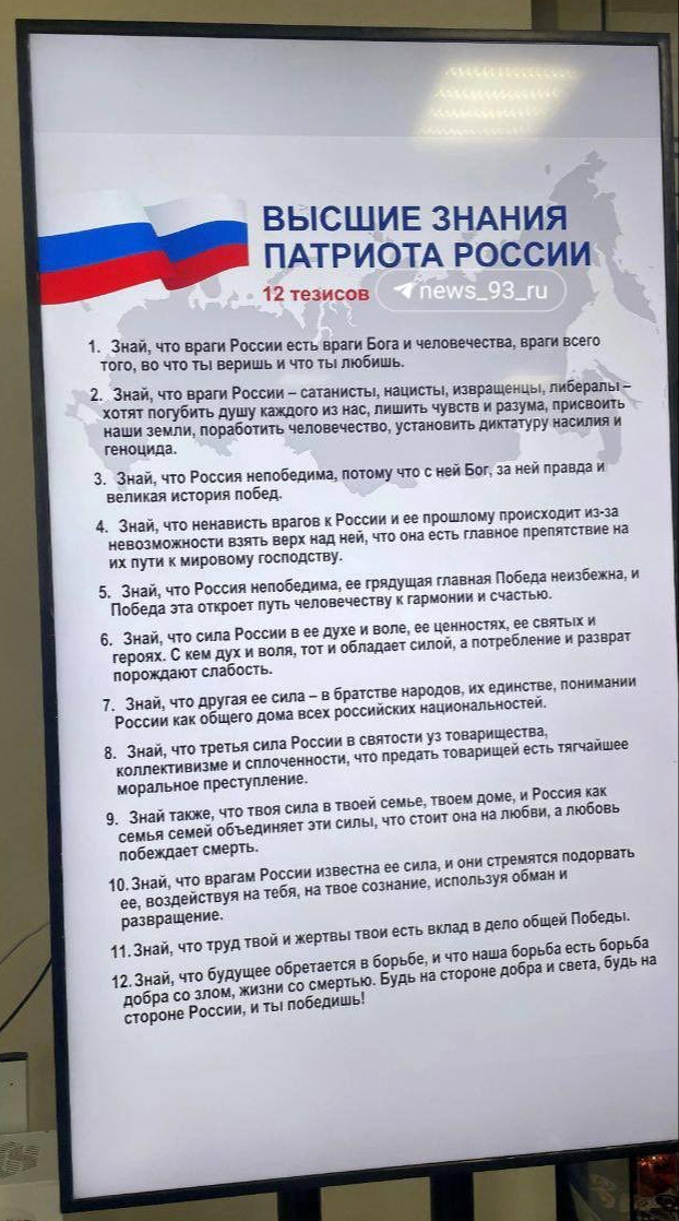 Это 12 высших знаний патриота Раисси! Прочитай их, патриот, и затверди. Вы - рюсськие! С вами - бох знает что!