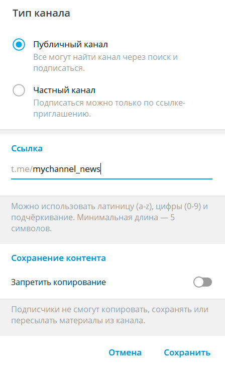 Канал может быть публичный, а может быть частный.