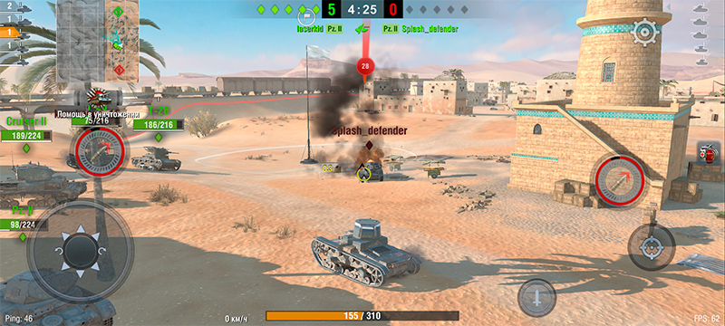 Танки на высоких настройках качества держались на уровне 60-62 FPS.