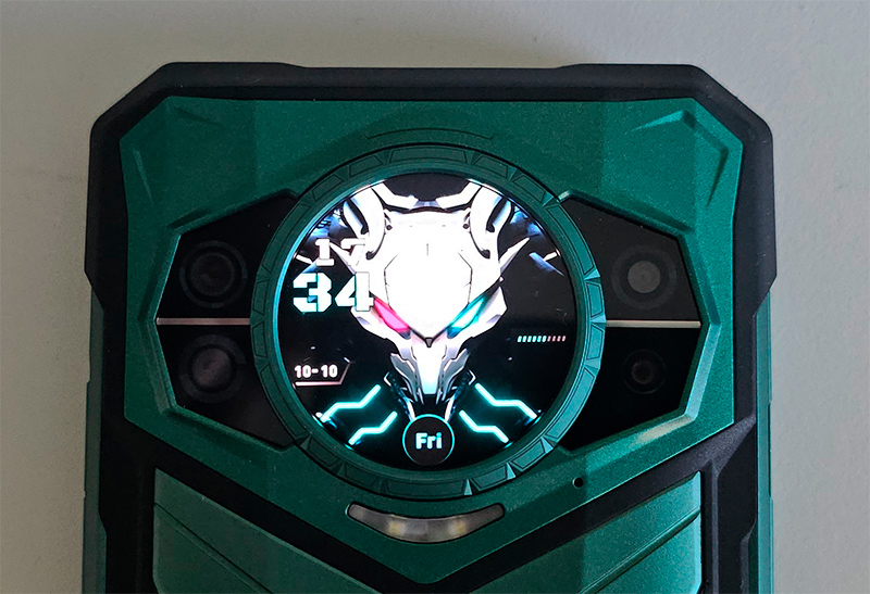 Ну что, вполне интересный защищенный смартфон. Платформа не супермощная, но достаточная, оперативной памяти - по полной, причем она расширяется за счет основной памяти, флеш-памяти - аж терабайт, причем память быстрая, очень емкий аккумулятор и, соответственно, отличная автономность, камера вполне терпимая, также есть камера ночного видения, которая может пригодиться. Плюс продвинутый задний экран, на котором можно менять циферблаты и приложения, а также эффектно выглядящая пульсирующая подсветка, показывающая процесс зарядки и наличие уведомлений.