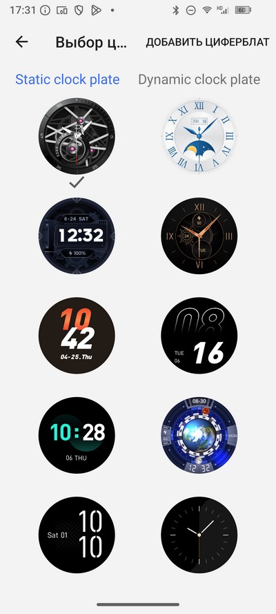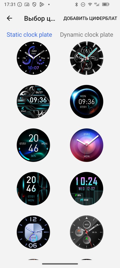 Выбор циферблатов для дополнительного экрана.