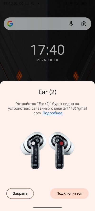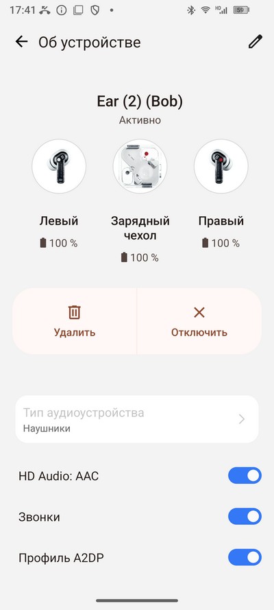 Для проверки беспроводного звучания подключил наушники Nothing Ear (2). Наушники подключились по кодеку AAC. Качество очень приличное: неплохие басы, почти не провисающая середина, нормальные высокие. Уровень максимальной громкости был достаточным для шумного окружения.