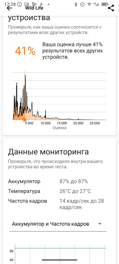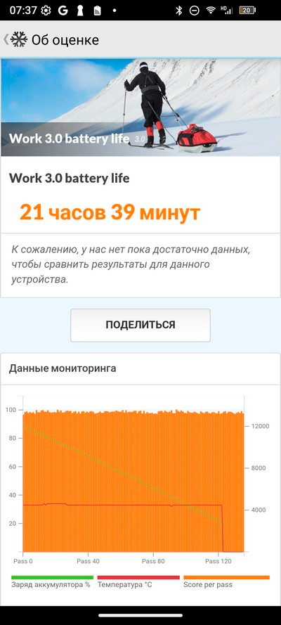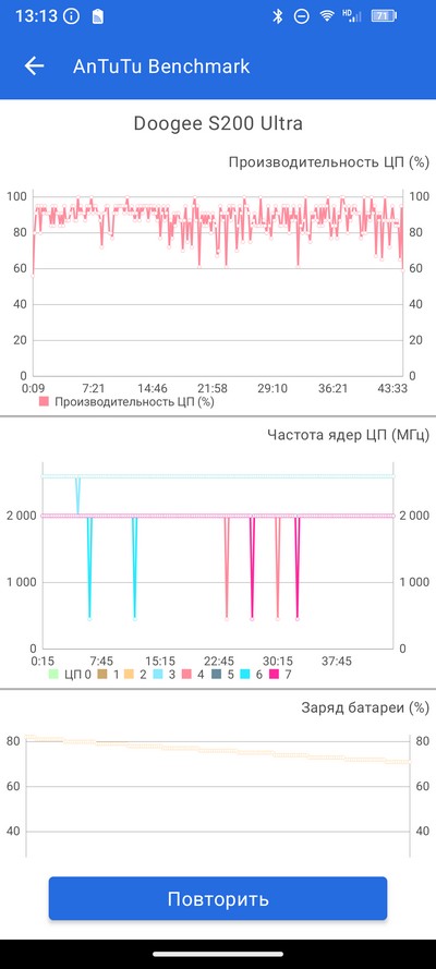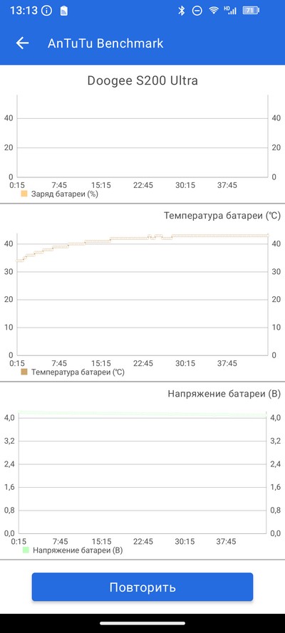 Стресс-тест AnTuTu. Батарея во время теста нагрелась до 42 градусов - нормально.