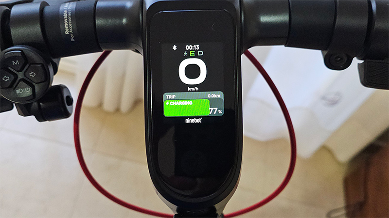 Дисплей самоката - большой и информативный. Для получения полного доступа ко всем функциям нужно установить в смартфон соответствующее приложение, отсканировать QR-код, который первоначально выводится на дисплее, после чего активировать самокат.