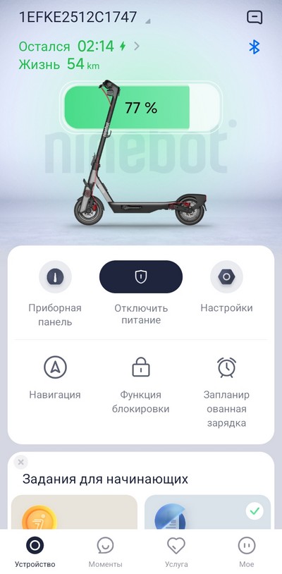 По поводу приложения и разных пользователей. Выяснилось, что этот самокат не позволяет одновременно подключать устройство к приложениям в разных смартфонах. Ну, то есть если самокатом будут пользоваться несколько людей, то все настройки будут делаться только в одном приложении, к которому привязан самокат. Если его привязать к другому смартфону, то в старом смартфоне самокат не будет подключен.