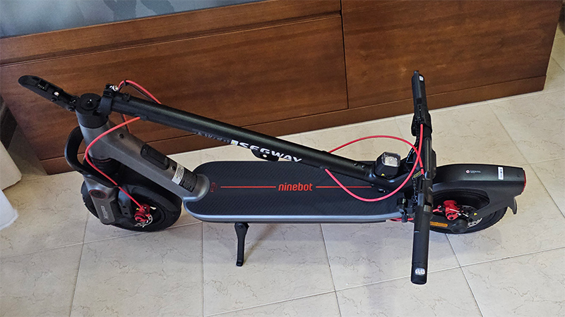 У этого самоката есть заметные минусы. У него довольно низкий клиренс, и он цепляет даже совсем небольшие возвышения. Также у него нет дисковых тормозов: есть передний электрический регенеративный тормоз, и задний - чисто механический: нужно ногой нажимать на заднее крыло, которое трется о колесо и тормозит.