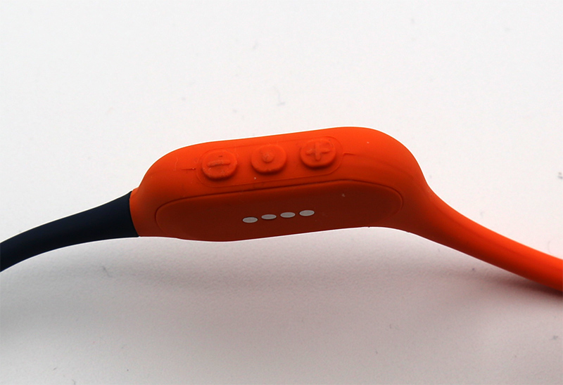 Кнопки управления расположены на утолщении в правой части наушников (для управления правой рукой). На внутреннее стороне утолщения видны контакты для зарядки и обмена данными с ПК.