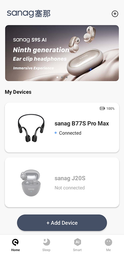 Управлять наушниками можно через приложение Sanag, доступное в Google Play и AppStore.