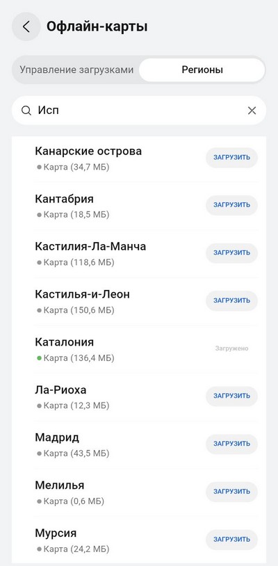 Чтобы пользоваться картами на смартфоне (трекинг тренировки), нужно соответствующий регион загрузить в этом приложении.