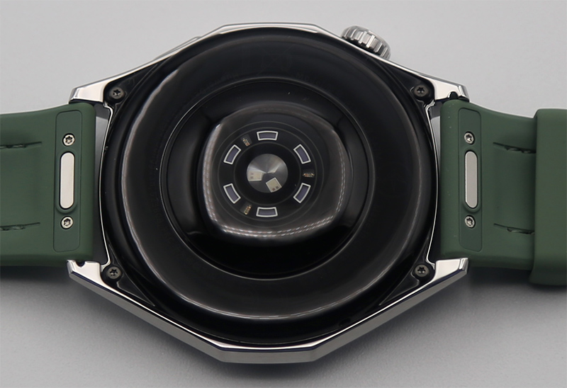 Нижняя крышка часов с датчиками, динамиком и микрофоном. Крышка изготовлена из стекловолокна.