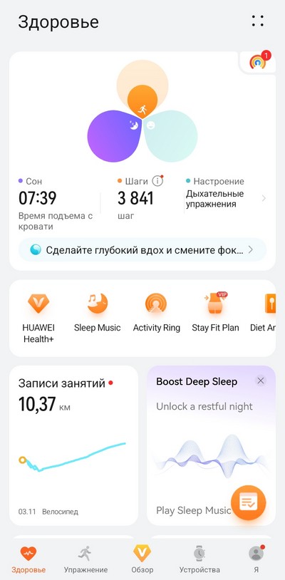А теперь давайте посмотрим, как это все выглядит в приложении Huawei Health.