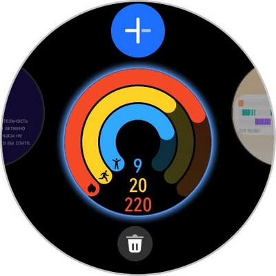От циферблата свайп влево - виджеты обычных приложений (сон, аудиоплеер) плюс информационные виджеты, где собираются различные данные. Ненужные виджеты из этого списка можно убирать, некоторые виджеты настраиваются (например, виджет тренировок).