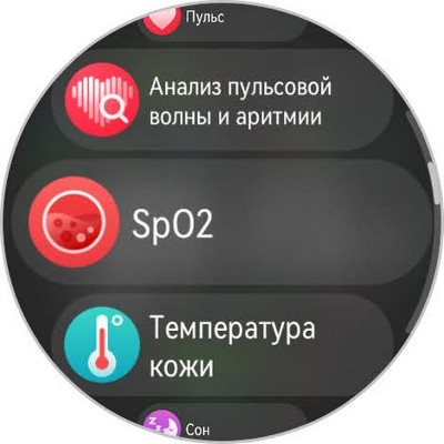 Датчики: акселерометр, гироскоп, пульсометр, барометр, компас, SpO2, термометр (температура тела)